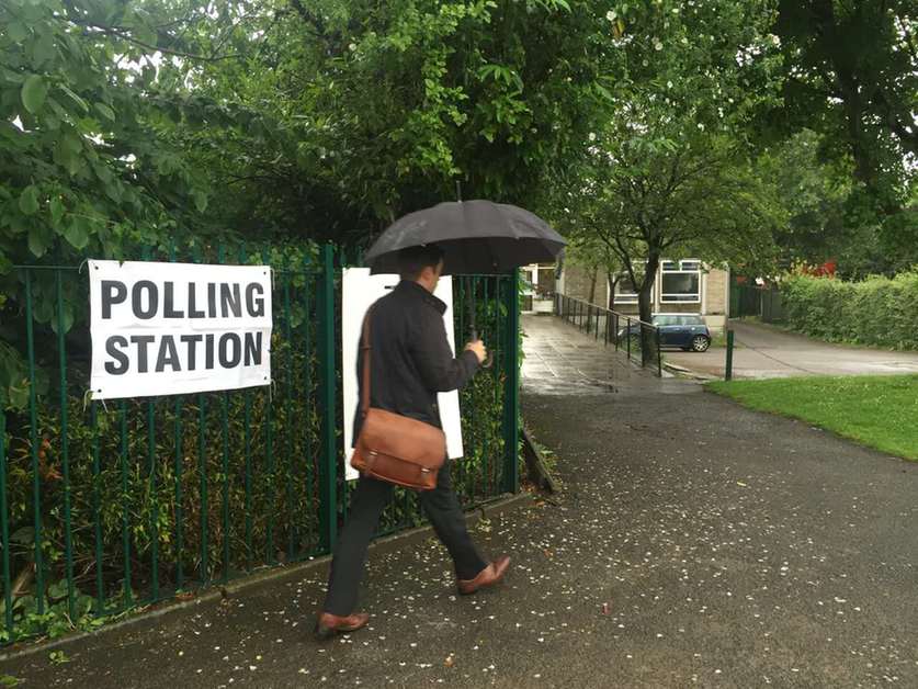 英国"脱欧"公投拉开帷幕 民众冒雨前往